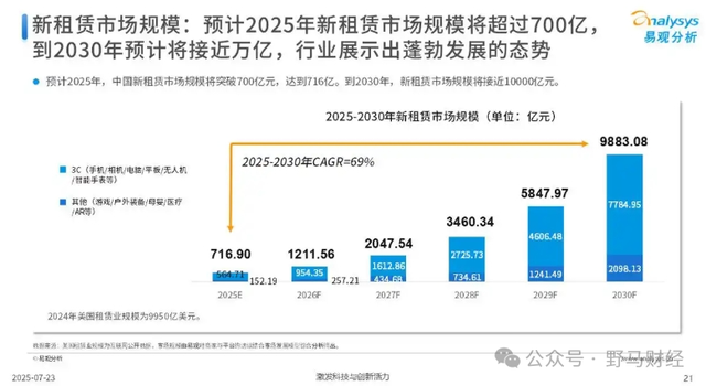 暴涨的需求直接带火了新租赁市场。“易观分析”发布的《中国新租赁行业洞察2025》显示,新租赁降低参与门槛、打破场景限制,释放出大量的消费需求,预计2025年新租赁市场规模将超过700亿,2030年将接近万亿。