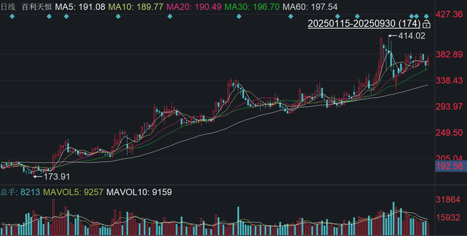 二级市场上,截至9月30日收盘,百利天恒A股(688506)上涨3.43%报375.30元/股,最新市值1549.52亿元。自上市以来,公司股价迅猛攀升,涨幅高达14倍。