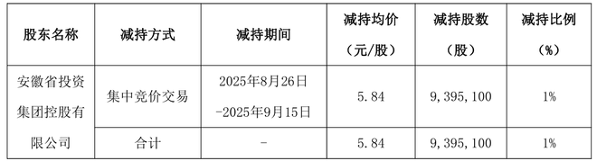 9月17日,安凯客车披露,股东安徽省投资集团控股有限公司减持939.51万股完毕,减持后持股比例降至6.37%。本次减持价格区间为5.62元/股至6.07元/股。按减持均价5.84元/股计算,本次减持的股东共套现约5500万元。
