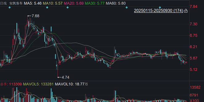 二级市场上,截至9月30日收盘,安凯客车报5.48元/股,最新市值51.49亿元,9月17日来累计下跌7.43%。